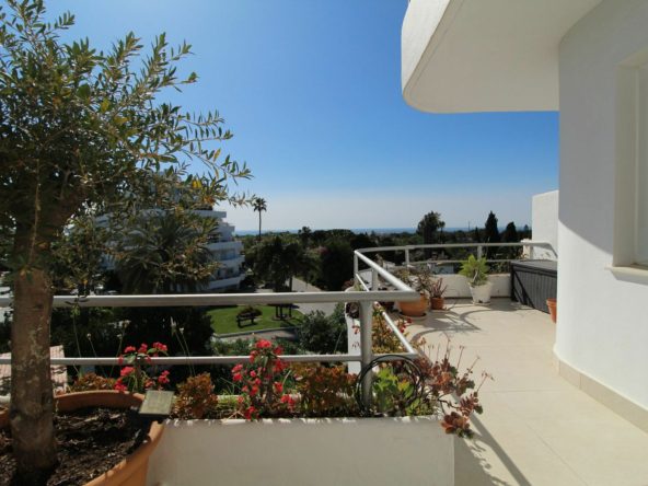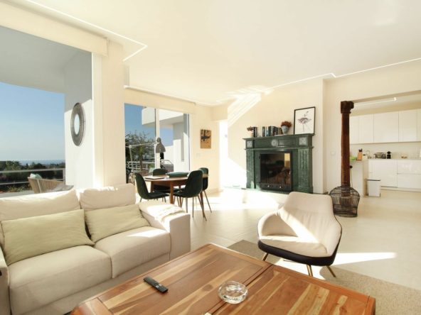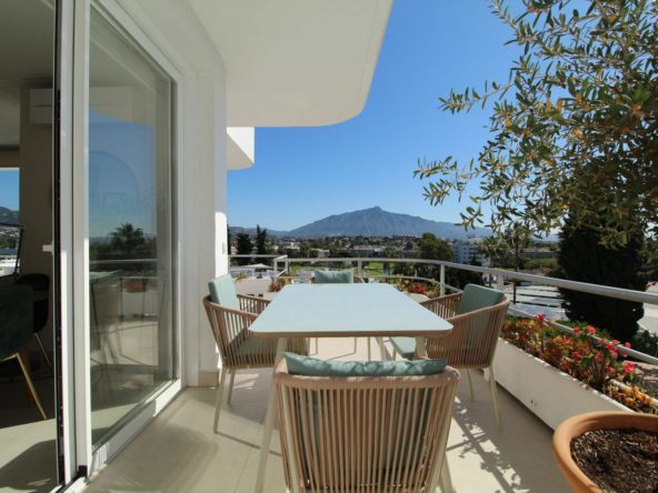 Upon entering the hallway, you notice the light and airy feeling eminating from this corner apartment. To your right , the double aspect living room is bright and spacious with various accesses to the terraces, and it benefits from breathtaking views of the Mediterranean Sea, the golfcourse, and the iconic la Concha Mountain. There is a fully functioning centre piece fireplace that serves both the living room and kitchen which is separated from the living area through stylish ornamental arches. The fully fitted kitchen boasts the latest appliances and premium finishes. A large island with plenty of space means culinary lovers will be able to prepare their favourite meals in a stylish and functional setting. One of the distinguished features of this property is its large wrap around terrace, spanning nearly 50 square metres – perfect for enjoying the outdoor lifestyle that Marbella is known for. Whether entertaining, relaxing, or simply admiring the picturesque surroundings, this terrace provides exceptional space and those incredible views.