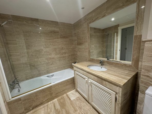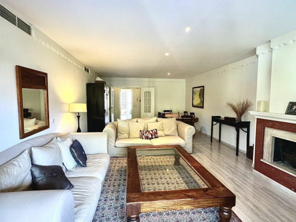 Spacious three-bedroom, three-bathroom flat located in the prestigious Alhambra del Golf residential complex, phase 3, in Guadalmina Baja, close to all amenities and the beach. This is a gated community with beautiful gardens and a communal swimming pool.