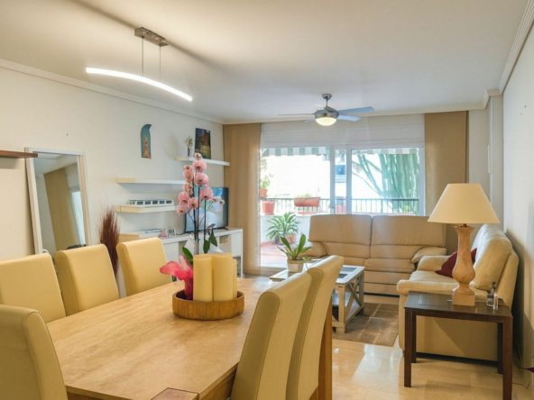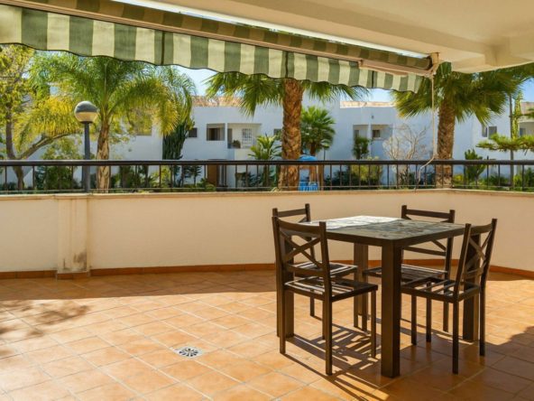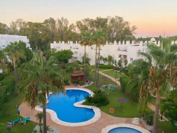 Two-bedroom flat located in the attractive Guadalmina Baja complex. Situated in a secure gated community, this flat also enjoys communal tropical gardens, a swimming pool and the convenience of being within walking distance of the beach, shops, restaurants and other local amenities.