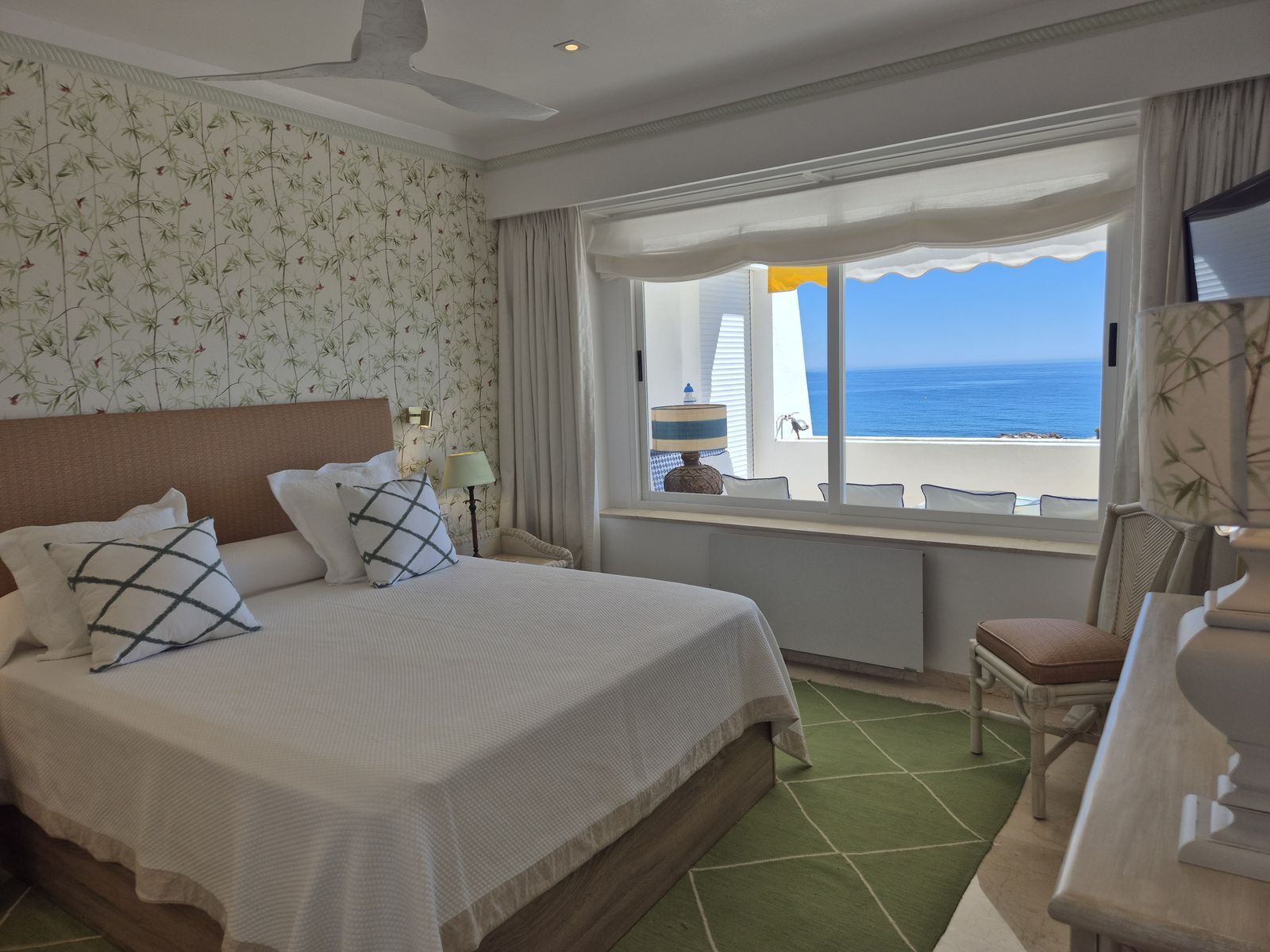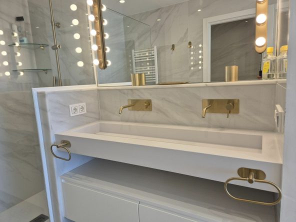 This spacious three-bedroom, three-bathroom apartment with perfect south orientation is located on the second floor and has completely open views of the sea and the entire bay of Marbella. On its terrace, there is enough space for a relaxation area and another where you can enjoy unforgettable evenings by the sea with family and friends, al fresco dinners, or simply lay comfortably listening to the waves of the sea with a good book. A smart new layout accommodates 3 en-suile bedrooms and an spectacular open plan designer kitchen where you can enjoy a beautiful view of the Mediterranean sea while you cook your favourite dishes or sip a glass of wine with your friends.