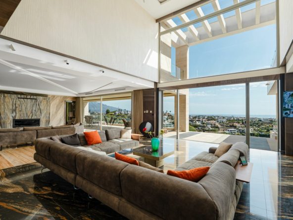 Positioned on an elevated and private plot in one of the most sought-after residential areas of Benahavís, this exceptional contemporary villa offers uninterrupted panoramic views across the Mediterranean Sea, golf valley, and surrounding mountains.