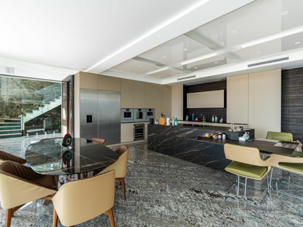 The villa is defined by its exceptional use of premium natural materials. Large-format marble and onyx surfaces create a distinctive and luxurious aesthetic throughout the property.