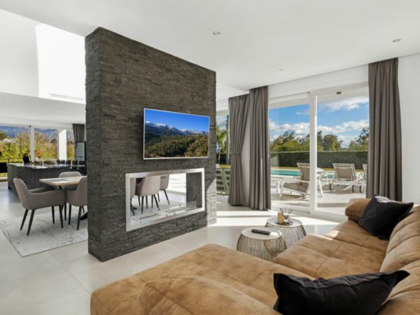 This stunning modern villa offers open views over the Golf Valley, La Concha Mountain, and the Mediterranean Sea, perfectly positioned in a quiet and sought-after area of La Quinta, just a 3-minute walk from the prestigious Westin La Quinta Hotel.