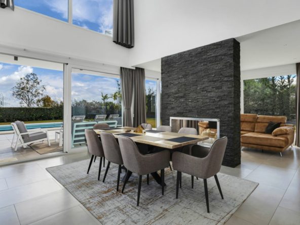 The villa is tastefully decorated and filled with natural light throughout. The double-height ceilings in the entrance hall and dining area create an enhanced sense of space and elegance.