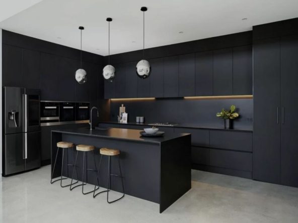– Fully fitted kitchen with aluminum frame doors and covered with COVERLAM (Color to choose)