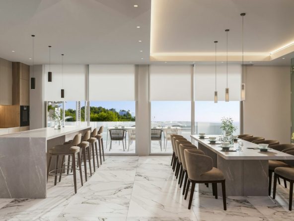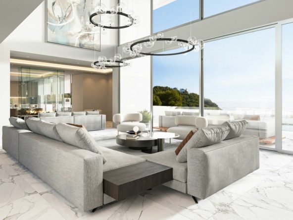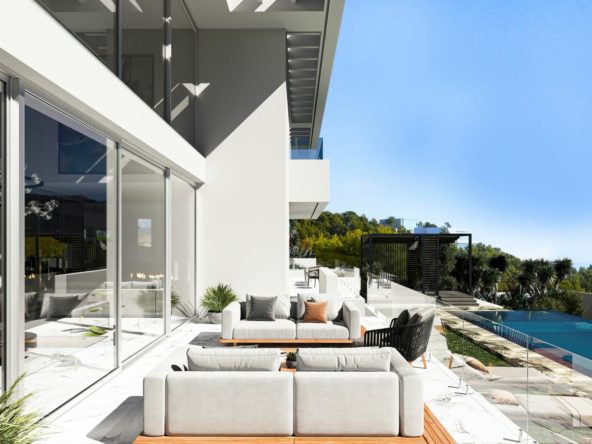 Brand-new property for sale in Paraiso Alto that will be ready for you by the end of 2023. The villa has a dynamic design with an open plan concept, geometric shapes and clean lines of style. The house offers six bedrooms, six bathrooms, guest toilet, large living and dining areas, a fully equipped American style kitchen with high quality appliances. On the lower floor it will be possible to have a wine cellar, a wellness area with a gym, spa and sauna. The villa will have huge windows with double height ceilings and glass doors will give you an amazing feeling of light and lightness. The impressive pool with waterfall will be covered with a special stone from Indonesia that purifies the water. An automatic irrigation system will be installed in the garden. The house also provides – a guest room, laundry room, pantry and dressing room, elevator, studio, separate guest toilet and a private garage that will accommodate three of your cars. Amenities include a digital video intercom, air conditioning and underfloor heating, Smart Home, a unique glass fireplace, built-in wardrobes and more. The villa is located in the exclusive residential complex “El Paraiso Alto”, surrounded by several golf courses, is located in the quiet valley of El Paraiso.