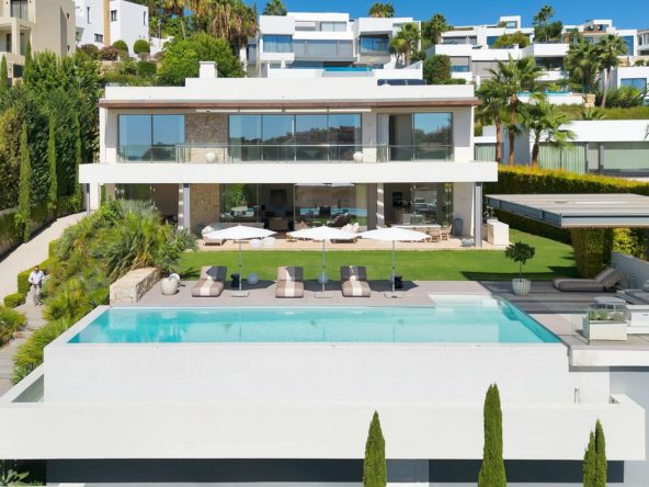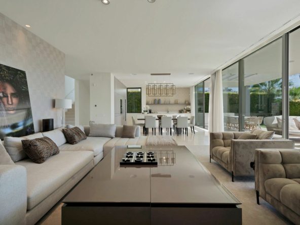 This exquisite contemporary villa is nestled within a prestigious gated community in Atalaya, offering breathtaking panoramic views of the golf course. Designed across three levels, this residence seamlessly blends modern elegance with functional luxury.