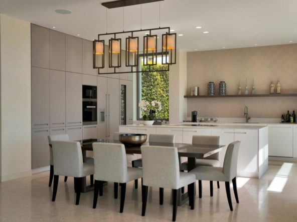 Outdoors, a fully equipped summer kitchen with a charcoal grill sets the stage for unforgettable alfresco dining experiences. A covered dining and lounge area, as well as an additional shaded terrace by the infinity pool, provide multiple spaces to unwind and enjoy the serene surroundings. Sun loungers line the pool, inviting you to relax in total tranquility.