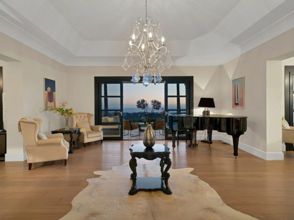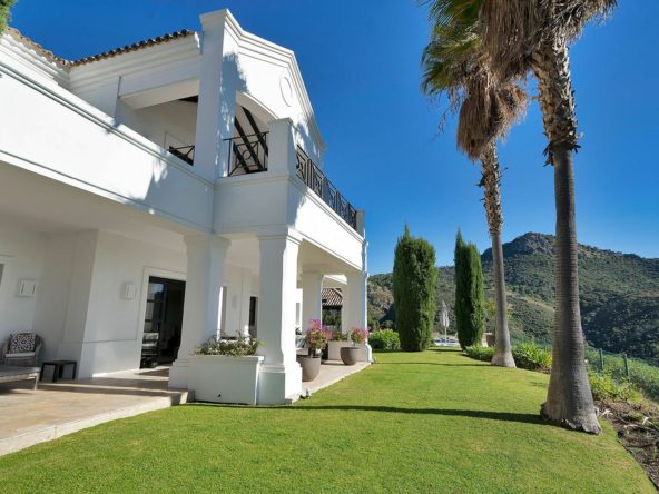 Set within the secure, gated community of Monte Mayor, this classic-style villa is approached via its own private gated entrance road, offering a real sense of privacy and grand arrival. South-facing and elevated, it enjoys panoramic views over the surrounding mountains and out to the Mediterranean Sea.