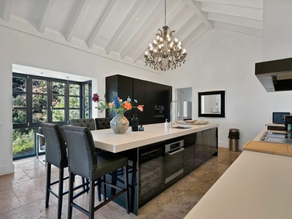 The home combines timeless elegance with space and light throughout. The main house offers four well-proportioned ensuite bedrooms, all designed to make the most of the views and natural light. A separate guest apartment with its own bedroom and lounge provides ideal accommodation for visitors or staff. High-quality finishes and careful detailing are evident in every area of the property.