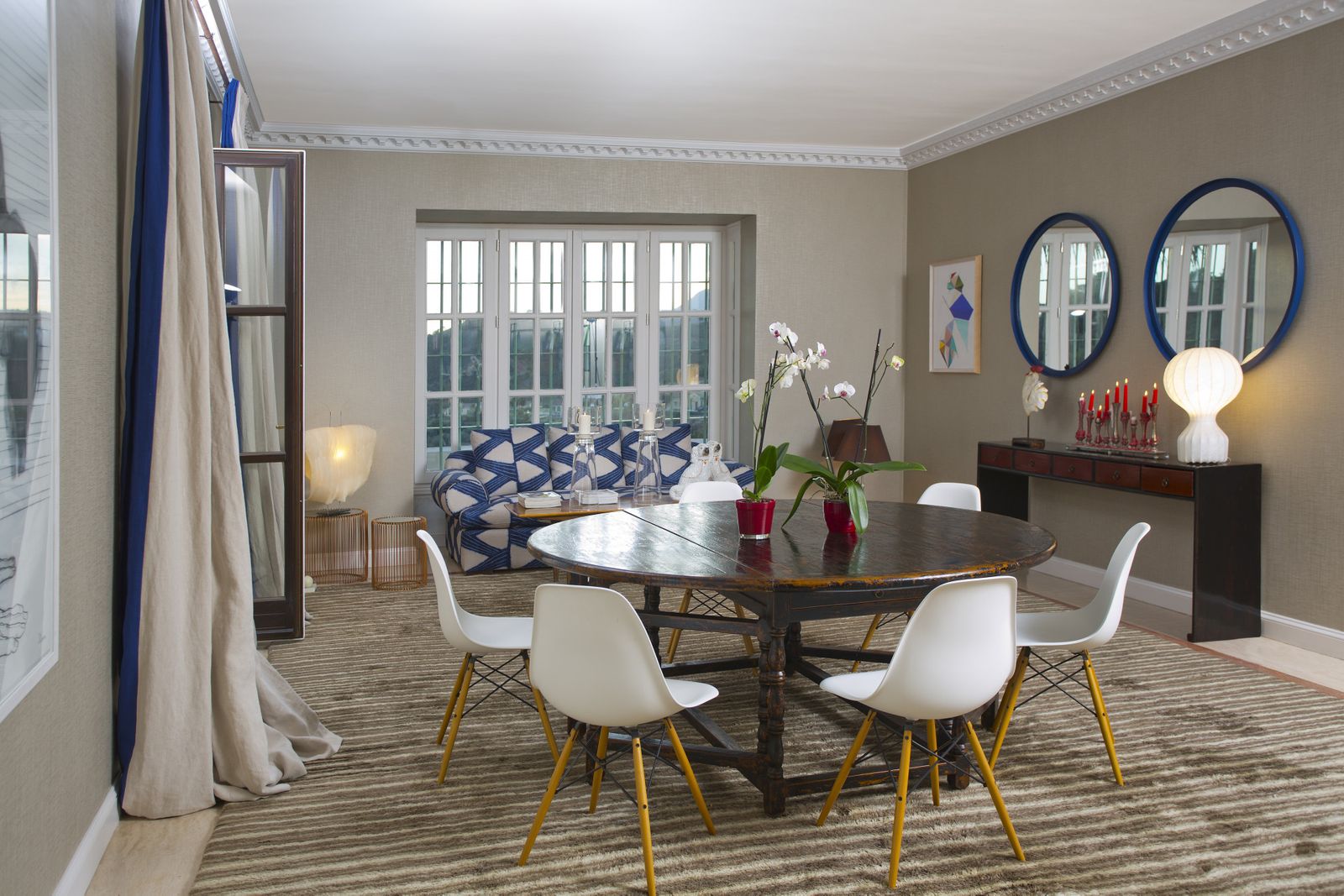 On the main floor, a large living room of 70 m2 with fireplace, separate dining room with access to the kitchen, sitting room and TV;