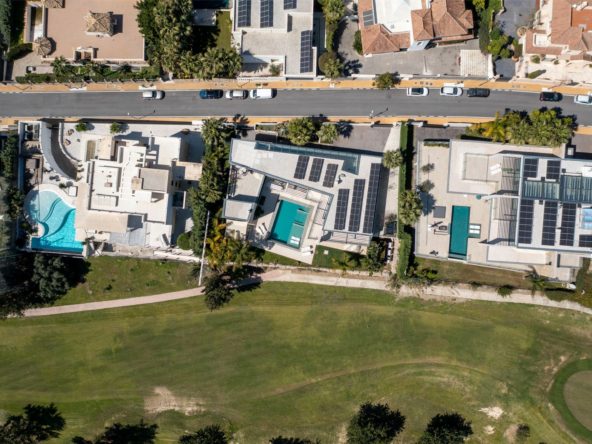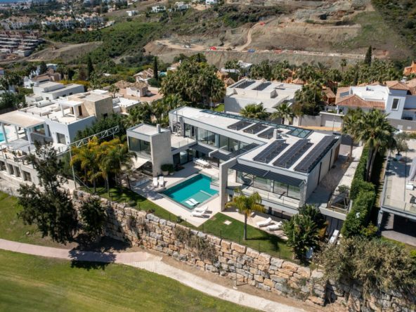 Newly built contemporary villa situated in the prestigious urbanization of La Alquería, Benahavís. Positioned frontline golf and facing east to south, the property offers panoramic views of the Mediterranean Sea, the coastline, and the iconic La Concha mountain.