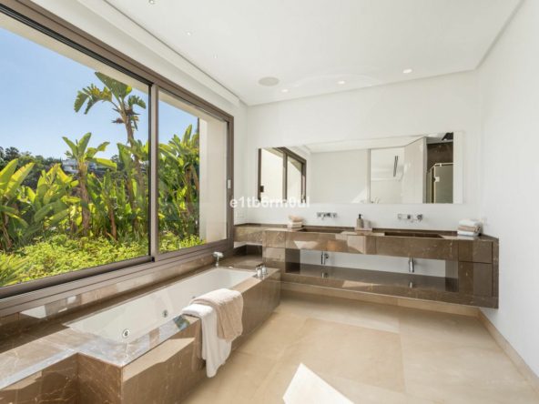 Every detail of this villa exudes quality, from the highest-grade finishes to the thoughtfully curated furnishings and bespoke lighting. The open-plan living areas are bathed in natural light, accentuated by floor-to-ceiling windows that frame breathtaking views and invite the outdoors in. A library or study to work from home in, and a gourmet kitchen, outfitted with MIELE appliances, perfect for entertaining guests.