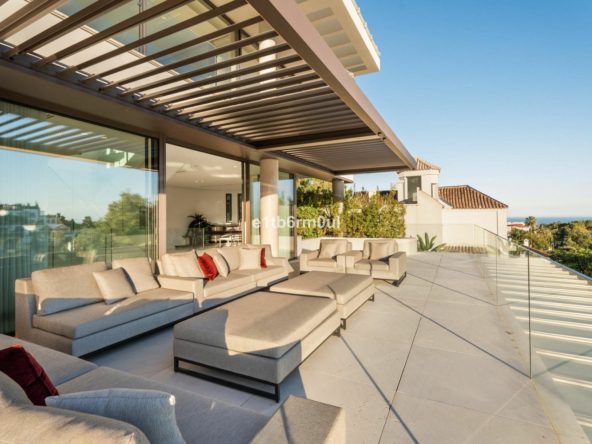 Perched majestically overlooking La Quinta golf towards the Mediterranean, this recently redecorated five-bedroom villa epitomises contemporary luxury living. Designed with attention to detail, the residence seamlessly blends sophisticated indoor spaces with expansive, lavish terraces, creating a harmonious flow between interior comfort and outdoor splendour.