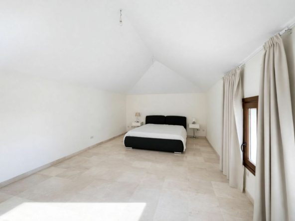 On the first floor there is another bedroom with a window, and on the other side of the hallway is the master suite with its private south-facing terrace, with sea views.