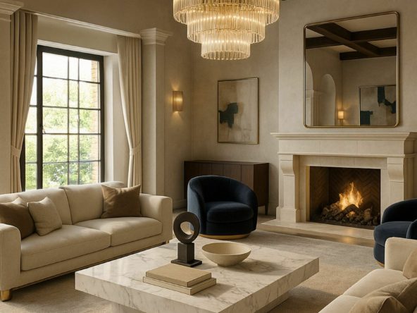 and home. Inside, bespoke finishes, soaring ceilings, and an ambiance of understated elegance