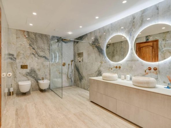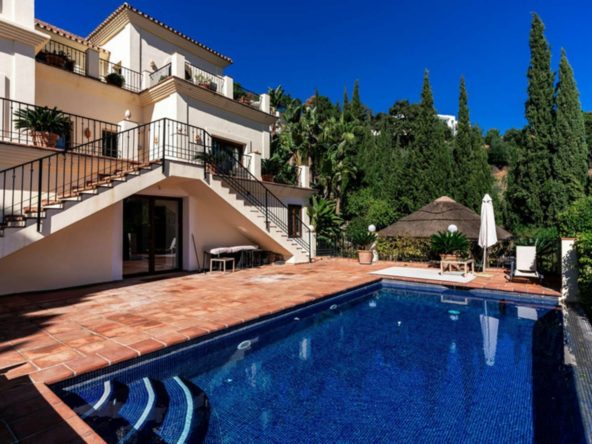Mansion for sale in Monte Mayor, Costa del Sol, with impressive views of the sea, mountains, golf courses and forest. The total area of the mansion is 590 m², 5 bedrooms, 6 bathrooms, 3 integrated and fully equipped kitchens.