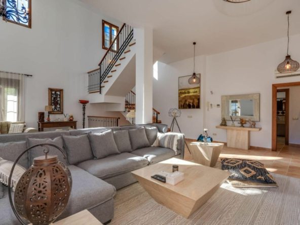 On the ground floor there is a magnificent view of the mountains, the pool and the garden. Large living area, integrated kitchen, games area, bedroom, dining room, sauna, 2 bathrooms and storage room.