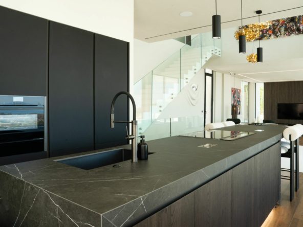 The spectacular basement level enjoys rare sea views and houses a full private wellness retreat, including a 24-meter heated indoor pool, sauna, a cold plunge pool, gym, and stylish bar. It also features a 16-seat cinema, bodega, second living room, and laundry area—ideal for both relaxation and entertaining.