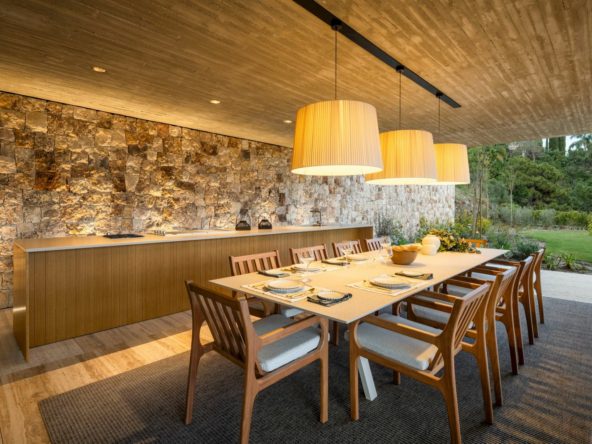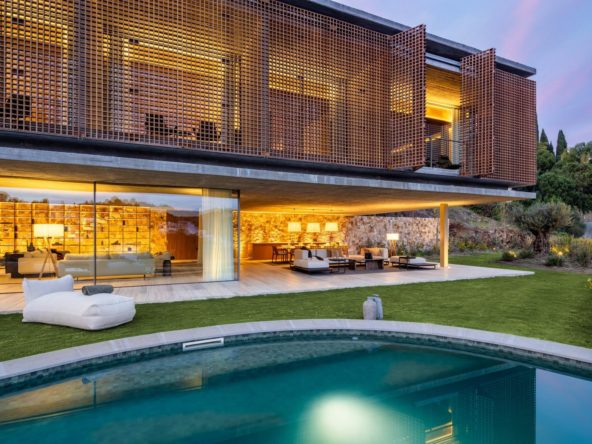 Inside, every detail articulates modern sophistication, with amenities that include a heated swimming pool and Turkish bath, as well as a private cinema room and wine cellar. These indulgent features create an environment where luxury meets comfort. Furnishings throughout the villa are selected to echo the modern architectural lines, ensuring an ambiance that is both elegant and welcoming.