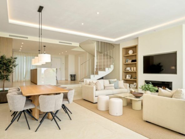 This exceptional 4-bedroom, 4-bathroom townhouse has been meticulously renovated to the highest standards and offers an unbeatable lifestyle in the sought-after area of La Quinta, Benahavís. Set frontline to the prestigious La Quinta Golf Course, the property enjoys breathtaking golf views, elevated sea vistas, and the serene beauty of the surrounding mountains and countryside.