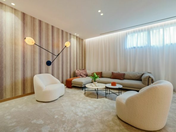 Residents can enjoy a wealth of leisure amenities, including a private swimming pool, a well-equipped gym, and a dedicated cinema room. The villa’s multiple terraces and balconies offer stunning views of the sea, countryside, golf course, garden, and pool, ensuring a serene and picturesque environment. The private garden and pool area provide an ideal setting for outdoor relaxation and entertaining.