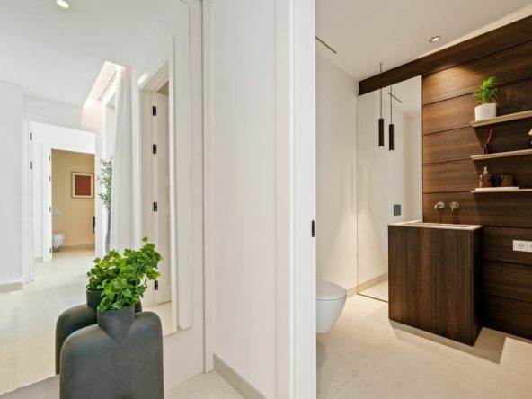 This exceptional luxury villa is situated in the prestigious area of Benahavis, Malaga, offering a prime front line golf location with breathtaking panoramic views. The property, classified as brand new and in excellent condition, boasts a generous built area of 577m², complemented by an expansive 428m² terrace and set on a private plot of 1,160m². With five spacious bedrooms, five bathrooms, and an additional guest toilet, this villa provides ample space and comfort for both family living and entertaining guests.