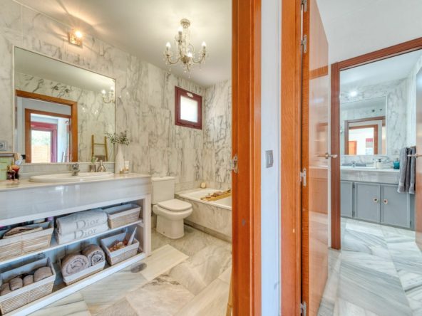 Set within a secure private community in Benahavís, this detached villa enjoys peaceful surroundings, open countryside views and excellent connections. Marbella’s vibrant centre and Puerto Banús are only minutes away, with Estepona reached in under 15 minutes. Designed for both full-time living and holidays, the villa features an open plan lounge and dining area with a working fireplace, a brand new fitted kitchen and a separate utility room. Sliding doors from the living space lead onto a covered terrace, the perfect spot for outdoor dining, entertaining or relaxing in the private Jacuzzi.