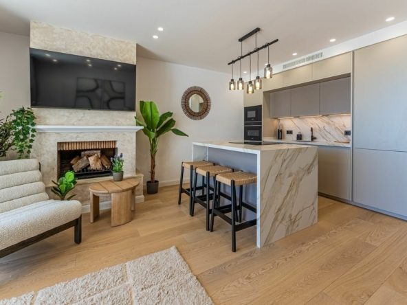 This beautifully refurbished traditional Spanish townhouse combines classic charm with a sleek modern touch. Thoughtfully redesigned, it now features an open-plan kitchen and living area, enhanced by expansive floor-to-ceiling glass doors that create a seamless connection between the indoor and outdoor spaces.