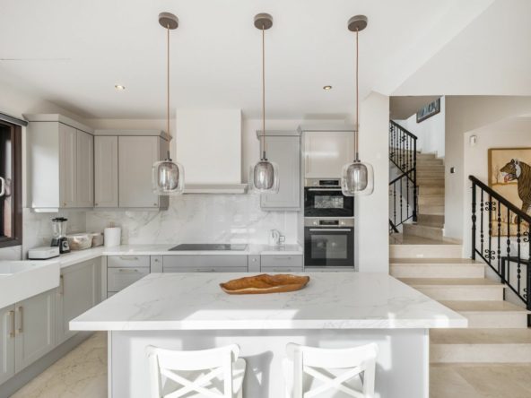 The villa combines traditional Spanish charm with modern comforts natural wood, marble, and stone finishes, underfloor heating, and Miele appliances. Outside, enjoy expansive terraces, a large garden, and a serene pool area with panoramic views.