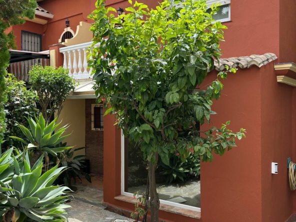Spectacular corner townhouse in Lomas de Monte Biarritz, between Marbella & Estepona. Just 2 km from the beach and San Pedro de Alcántara, this 203 m² home sits on a 423 m² plot with a private tropical garden. Features include a bright living room with garden access, renovated premium kitchen, 4 bedrooms, 3 bathrooms, and a large solarium. Extras: Kommerling windows, photovoltaic solar panels (warranty until 2029), communal pool & gardens. A private retreat in one of the Costa del Sol’s most sought-after areas.
