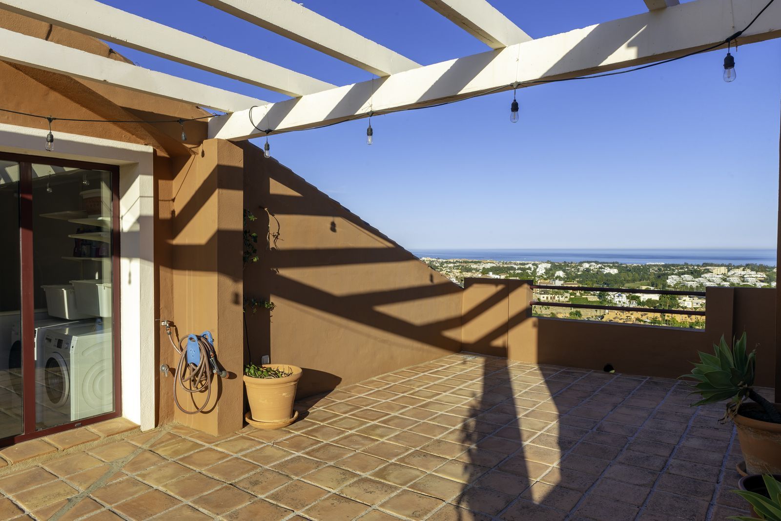 Perched in El Paraíso Alto, this corner townhouse of 225 m², southeast‑facing, is a poem of panorama: every room opens onto the Mediterranean and the iconic silhouette of La Concha. Set within a gated, monitored community where three pools nestle among pine and greenery, the property strikes a rare balance of security, privacy and breathtaking views.