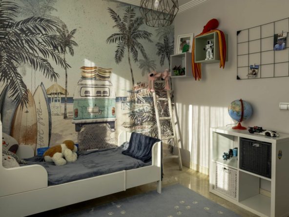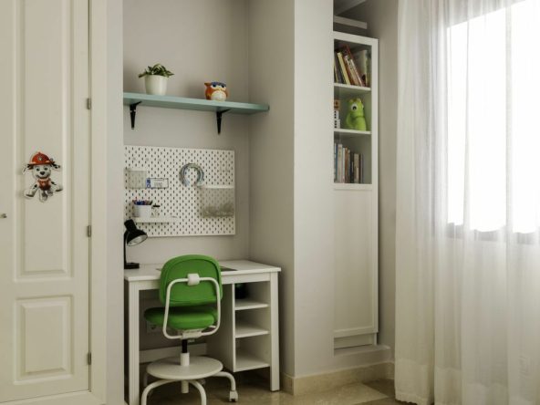 Upstairs, the master suite is a private refuge with an en‑suite bathroom and a large walk‑in closet. Two further bedrooms share a generous bathroom; all bathrooms combine showers and bathtubs for everyday comfort. Built‑in wardrobes and expansive terraces with panoramic views add practical elegance.