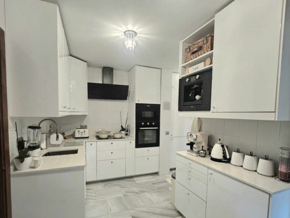 Impeccably maintained, this villa features three bedrooms (two with en-suite bathrooms), three bathrooms (two en-suite), an inviting entrance hall, an open-plan living-dining room, and a brand-new fully equipped kitchen with integrated oven, microwave, coffee maker, fridge-freezer, dishwasher, and quartz worktops. Luxurious marble flooring extends throughout, while the expansive outdoor terrace – recently renovated – includes a 5-person jacuzzi for ultimate relaxation. The fully fenced landscaped garden boasts automatic irrigation, ensuring low-maintenance beauty.