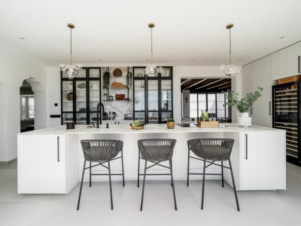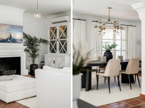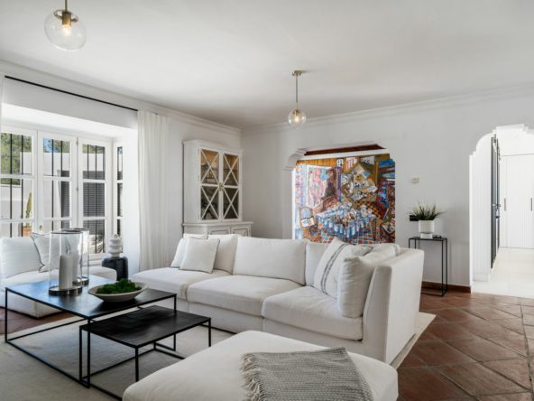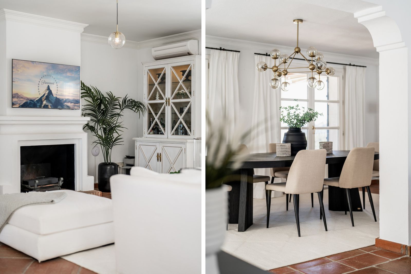 Atop the charming Andalusian village of Benahavís, 400 metres above sea level and surrounded by the Sierra de las Nieves and lush greenery, lies this haven. In an exclusive gated community, this splendid villa, inspired by traditional Spanish cortijos, stands nestled amidst a forest of pine and cork trees. With walls clad in brilliant white lime and red-tiled roofs, this retreat offers incredible sea views and the feeling of being immersed in nature, all just 20 minutes away from Marbella.
