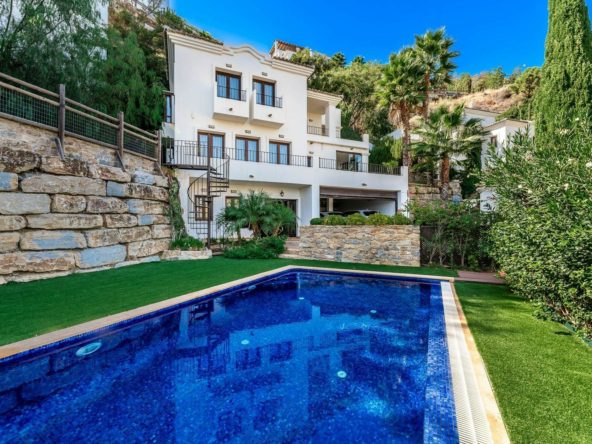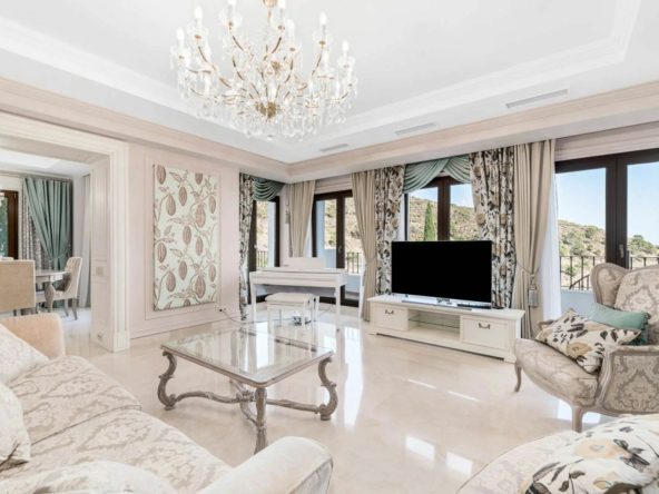 Five-bedroom villa for sale in the exclusive Benahavis Country Club area, with sea and mountain views. Expect the spectacular views and privacy, surrounded by the comforts of the Country Club. The property resides in Benahavis, which is just 10 minutes from Marbella, Puerto Banus and San Pedro de Alcantara.