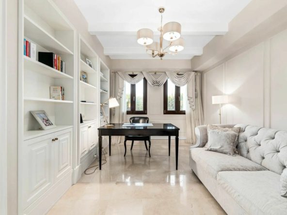 A large property of 492 m2 built, of which 130m2 are terraces, it has four levels and delivers panoramic views to the sea. Outside, there is a garden with mature palm trees, grass areas and swimming pool. Plenty of terrace areas to enjoy the Mediterranean climate also and plenty of large windows to flood the property with light.