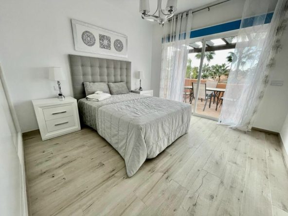 New south facing three bedroom townhouse in Paraiso Bellevue, in El Paraiso on the New Golden Mile, just a short drive from the beach and all leisure amenities. The complex boasts fantastically maintained gardens and a large communal lagoon style swimming pool. On the main level there is a living room with a fireplace and patio doors leading to the terrace and private garden; Open plan kitchen along with breakfast bar and guest toilet. On the upper level is the master suite with access to the private terrace and two guest bedrooms that share a bathroom. There is also a large solarium with partial sea and mountain views. Other features include marble floors, fitted wardrobes and hot and cold air conditioning.