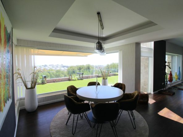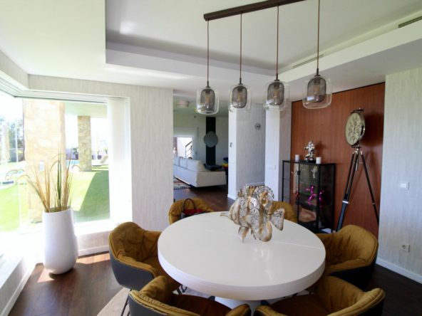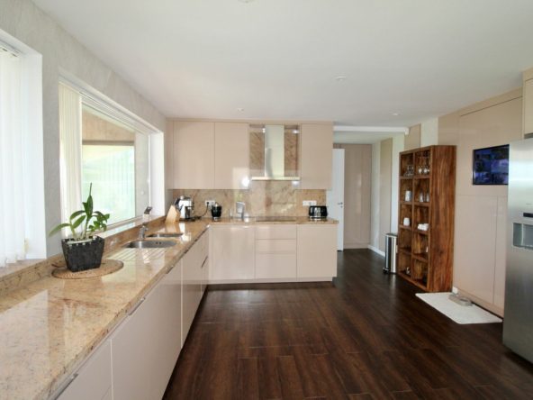 Mediterranean style villa on the frontline golf course of Atalaya with fantastic sea views and views to Gibraltar. 626m2 plot at one level, splendid garden, private pool and whirlpool. From the main entrance you get to an elegant living room with fireplace and separate dining room, both with access to the covered terrace. The large modern kitchen has room for a breakfast area. On the first floor is the master bedroom with access to the large terrace from which you have wonderful views. There are two more bedrooms on the same floor. There are hardwood floors on the first floor, the rest is marble floor, underfloor heating. There is a parking for 2 cars and a seperate one bedroom apartment. Villa for sale in Benahavis – Costa del Sol – Andalucia – Spain.