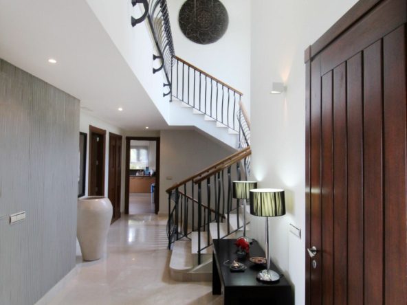 Situated on a gated community just a short walk from the beautiful village of Benahavis and all its famous restaurants, and just seven kilometres inland from the glamourous coastal hotspots of Puerto Banus and Marbella lies this contemporary south facing villa with absolutely stunning views out over the Mediterranean. This is a very spacious property with five large en-suite bedrooms distributed over three floors. The living & dining areas are open plan with lots of windows giving it a bright and airy feel throughout the day. Off the living room is a covered terrace which looks out to the heated pool and gardens, both maintained by the community and enjoy those amazing views out over the Mediterranean and La Concha mountain. The dining area is separated by the central fireplace and leads through to the large modern kitchen and breakfast area. The enormous lower level is currently used as a games room with bar, cinema and gym and enjoys natural light and views over the mountains. The standard of finish is high with underfloor heating in the bathrooms and good quality doors, windows and marble floors. The villa has private parking for two cars and plenty of storage rooms. The development is gated and has 24h security guards. This villa would make a fantastic low maintenance permanent residence or a perfect lock up and leave holiday home, which also has fantastic rental potential.