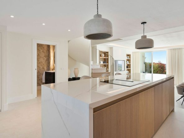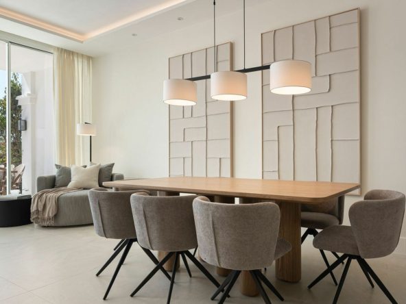 An exquisitely totally reformed townhouse located in the popular urbansiation of El Mirador de La Quinta in Benahavis. As you enter the property, you are greeted with an abundance of light, high ceilings and sea views through the extra high sliding terrace doors. The bespoke open-plan kitchen leads down to the extremely spacious living/dining room and straight out onto the covered terrace leading to the communal gardens offering stunning South-East facing views towards the sea and mountain. On the first floor you have 3 bedrooms and 3 bathrooms with the master bedroom having a generous walk in wardrobe, private terrace and a large bathroom suite with stunning views. On the third floor you have the 4th bedroom suite having access to 2 terraces also with stunning views. The townhouse was completely gutted and has been fitted with high quality materials throughout, the interior decoration and color scheme has been carefully selected creating a classy yet warm feeling. A truly magnificent townhouse in a very popular location.