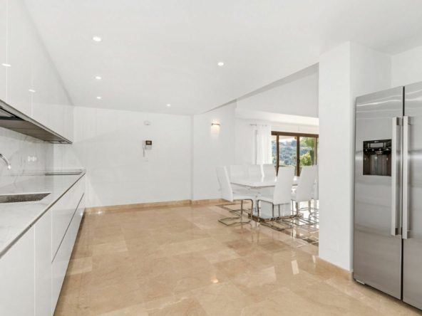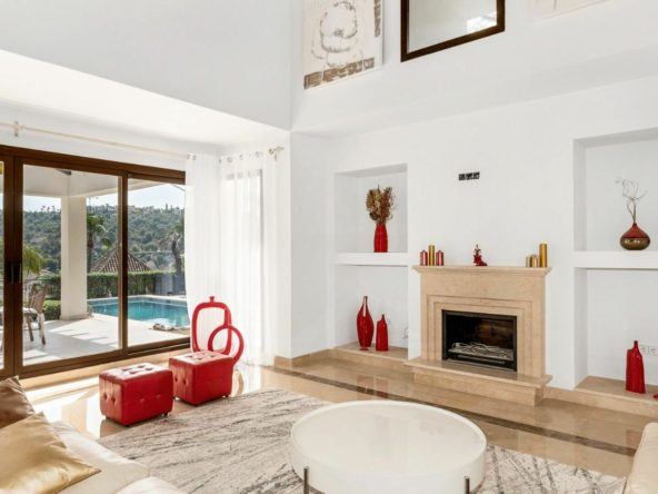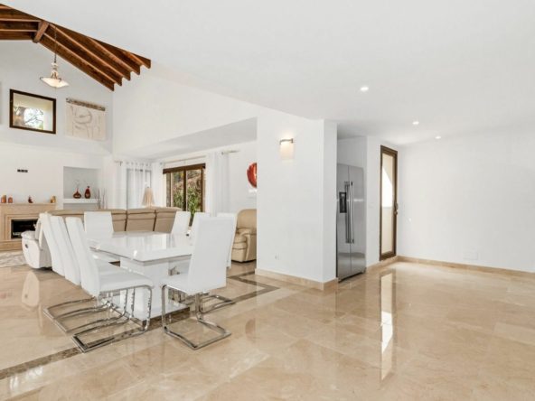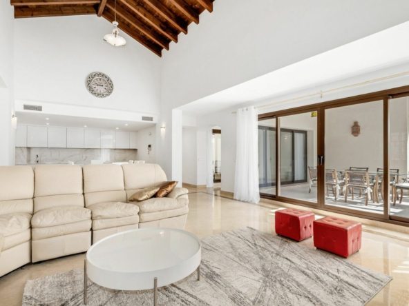 Step inside this Andalusian style villa and be greeted by a spacious entrance hall on the street level. The living and dining area on the first floor opens up to multiple terraces, outdoor spaces, and a sparkling swimming pool. The master bedroom with an en-suite bathroom is also conveniently located on this level. With high ceilings and incredible views of the golf course and mountains, this villa is truly a gem.