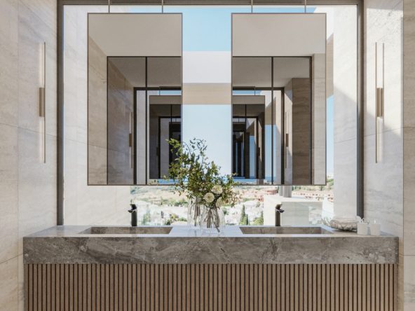 Stunning property set on a corner plot with its own cul de sac entrance. The villa is built over three floors plus a rooftop solarium. In addition to the exceptional living area, the villa also has state of the art domotics, underfloor heating a gymnasium and spa with sauna and hammam and its own wine cellar. The villa has five bedrooms and six bathrooms with two extra toilets spread over three levels. There is interior parking for three cars and car ports for two more add to the privacy and security.