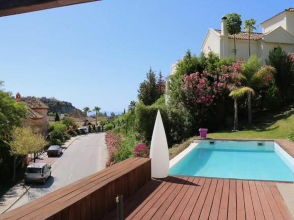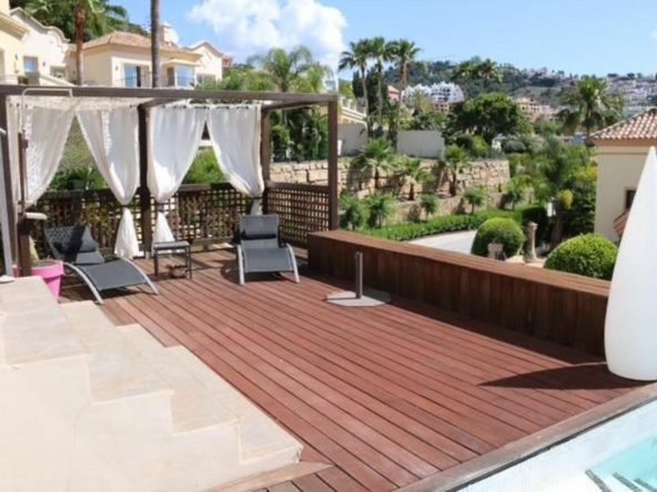 In Los Arqueros, Benahavís, we present this 5-bedroom, 5-bathroom villa that stands out for its style, comfort, and privacy.