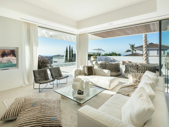 Nestled in the serene enclave of La Quinta, this contemporary villa, built in 2021, is designed to capture the essence of luxury living. South-facing, it offers stunning, sweeping views from the impressive La Concha Mountain to the Mediterranean Sea and even Gibraltar, making every sunrise and sunset a picture of peace and beauty.