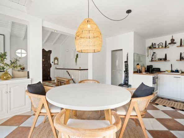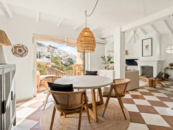 Inside, the townhouse offers a bright and comfortable open-plan living area, where natural light flows throughout the space. The living room connects seamlessly to the dining area and kitchen, creating an easy and welcoming layout. One of the highlights of this home is the 13 m² terrace, offering lovely views over La Heredia’s charming streets and even the sea. It’s the ideal spot for a morning coffee, a slow lunch, or a glass of wine while soaking up the peaceful atmosphere of the village.