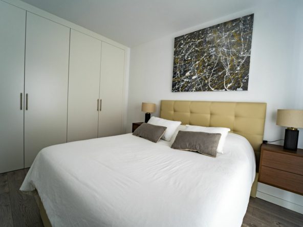 On the first floor, two well-appointed bedrooms provide cozy sleeping arrangements—one with a double bed and the other with two single beds. The top floor is reserved for the master suite, complete with a private bathroom and an exclusive terrace, offering the perfect spot to enjoy quiet moments in the sun.