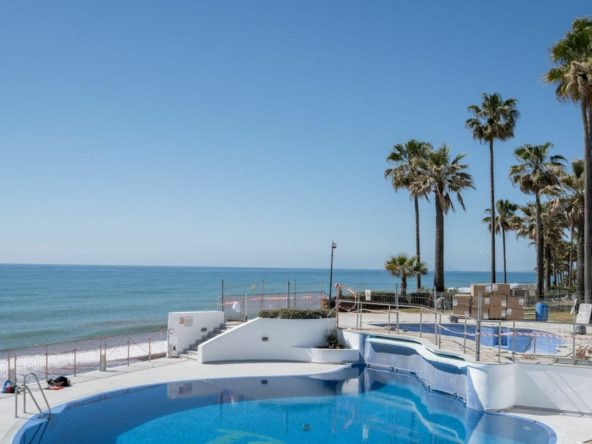 Situated along the renowned New Golden Mile, the property enjoys a prime location, with direct access to the beach via beautiful communal gardens. The centre of Estepona is just a few minutes’ drive away, and the property benefits from excellent road links, including the A-7 coastal motorway, ensuring easy access to Marbella, Puerto Banús and beyond. The area boasts prestigious international schools, making it an ideal location for families, whilst nearby golf courses, sports facilities and supermarkets cater to a variety of needs.