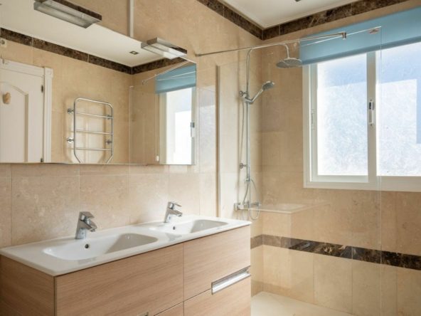 With a bright interior and large terraces, the house offers plenty of room for relaxation and entertaining. The property features four spacious bedrooms and three bathrooms, including a master bedroom with an en-suite bathroom. The living and dining areas are complemented by a chimany, creating a cozy atmosphere. The kitchen is fully equipped and leads to a laundryroom. The living room and bedrooms are fitted with air conditioning, ensuring year-round comfort. A guest toilet, fitted wardrobes and high-speed fibre-optic internet are additional features of this home.