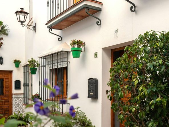 The townhouse is comfortable and cosy, with a spacious living room with a fireplace and a charming, fully equipped kitchen. The bedrooms with typical Andalusian balconies with original wodden windows, traditional flooring in all rooms, give this modern house a special feel. Tourist licence in place